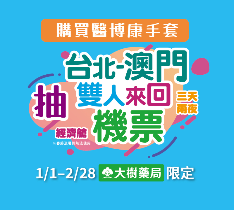 2026.1.1-2.28於大樹藥局消費任一盒醫博康手套,憑消費發票填寫Google表單參加抽獎。